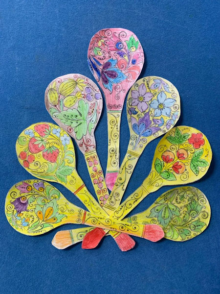 Разрисовывая эскиз хохломской ложки, ребята оттачивали аккуратность, развивали чувство цвета и прикоснулись к волшебству исконно русского искусства.